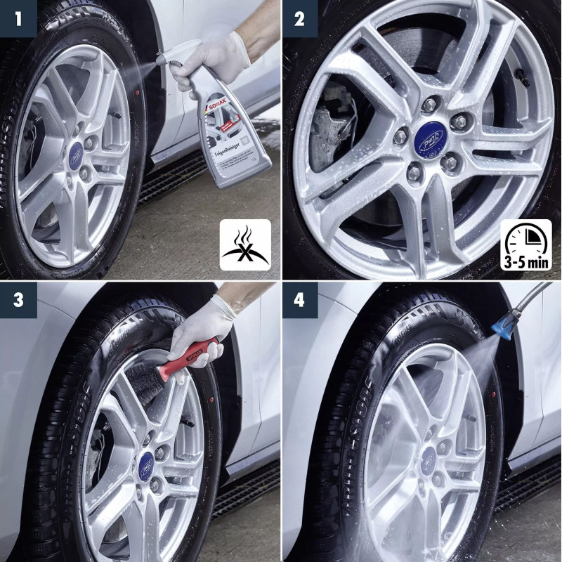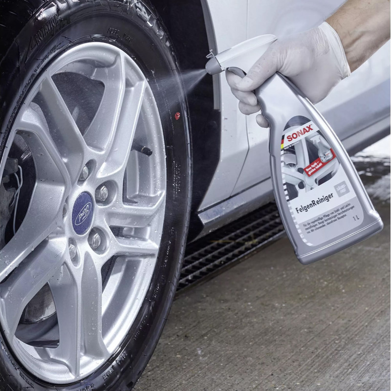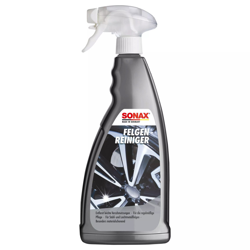 Безкислотний очисник легкосплавних та сталевих дисків SONAX Felgen Reiniger (430341) швидко та легко видаляє типові забруднення, спричинені гальмівним пилом та дорожнім брудом з усіх сталевих та легкосплавних дисків. Його регулярне використання запобігає утворенню стійких забруднень. Безкислотна формула особливо дбайлива та сумісна з усіма пластиковими, фарбами та металевими деталями.