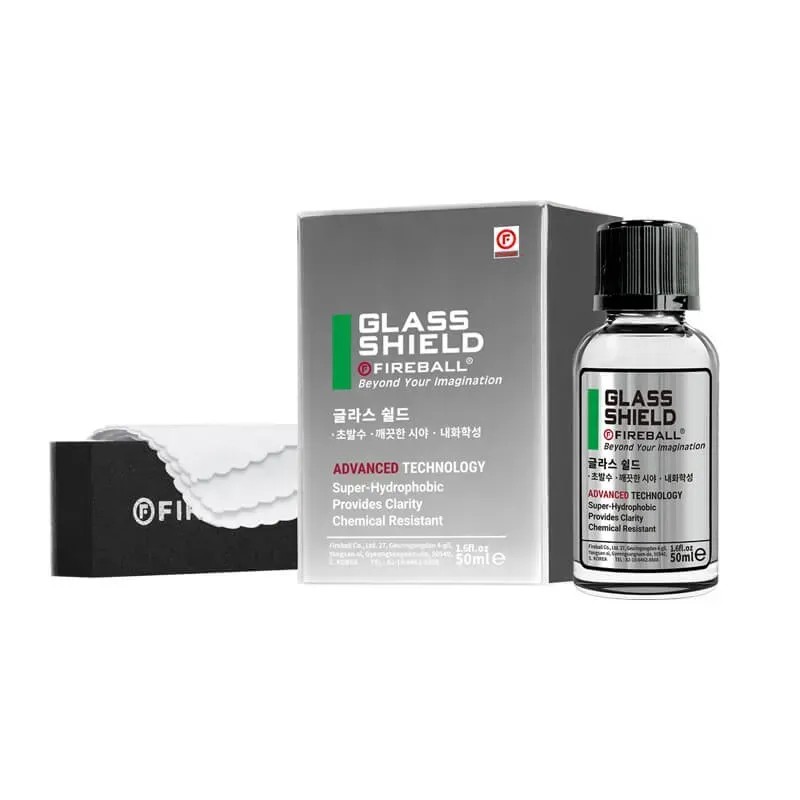 Fireball Glass Shield — це передове, довготривале захисне покриття для скла ("антидощ") на основі діоксиду кремнію (SiO₂). Воно створене для створення ідеально гладкої та потужної гідрофобної поверхні на всіх зовнішніх скляних елементах автомобіля.