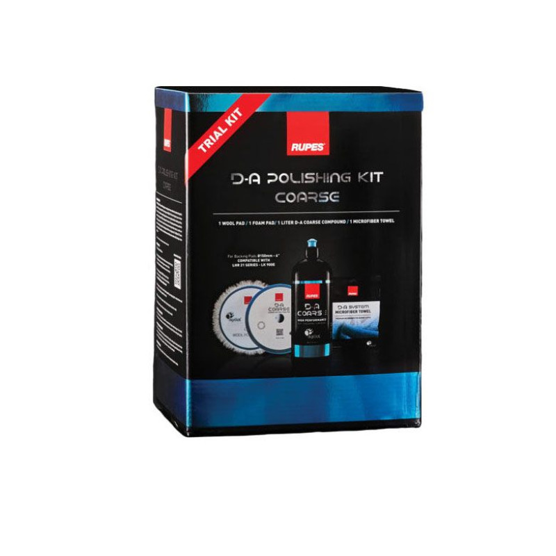 Набір RUPES D-A COARSE TRIAL KIT Ø180 мм призначений для усунення пошкоджень різної інтенсивності з різних типів ЛФП — як помірних, так і глибоких.Він забезпечує:швидке видалення дефектівзручність роботинизьке пилоутвореннянадання поверхні блискуПаста та полірувальний круг D-A COARSE є новітньою розробкою RUPES для збільшення продуктивності системи BigFoot. Поєднуються з рандомно-орбітальними та планетарними машинками. З набором RUPES D-A COARSE TRIAL KIT Ø180 мм полірування буде максимально швидким, ефективним і комфортним. При цьому, ризик пропилів мінімальний, а при дотриманні правильної технології — і зовсім відсутній.Комплектація RUPES Trial Kit D-A Coarse Ø180 мм:1 × груба полірувальна паста D-A COARSE, 1 літр1 × полірувальний диск D-A COARSE, 180 мм1 × полірувальний диск із вовни COARSE, 170 мм1 × синя мікрофіброва серветка Premium Microfiber Cloth Blue1 × інструмент для зняття та чищення полірувальних кругів Claw PadSoficar – представник RUPES в Україні. Разом із дистрибуцією ми забезпечуємо офіційне сервісне обслуговування техніки бренду. Надаємо гарантію 12 місяців та здійснюємо післягарантійний ремонт полірувального та шліфувального обладнання RUPES.