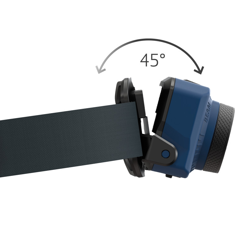 Нахил корпусу відносно кріплення теж можна змінювати, відштовхуючись від поточних потреб. Максимальний кут нахилу – 45°. Також підігнати під себе можна і ремінець. Він еластичний та міцний водночас. Це дає можливість використовувати ліхтарик, вдягаючи як просто на голову, так на захисну каску, шолом або шапку.