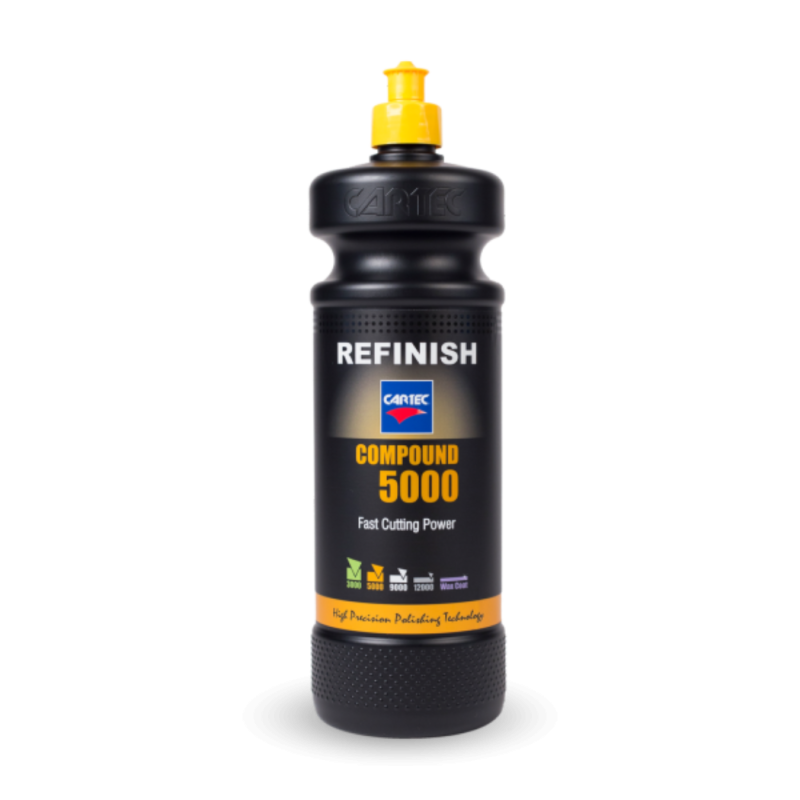 Склад швидко виправить забруднення, окислення або потьмяніння лакофарбового покриття, а також ним легко видалити такі дефекти лакофарбового покриття, як глибокі подряпини (P1500), сліди від бризок та апельсинова кірка. Cartec Compound 5000 використовує самозмазуючу формулу, що означає, що під час використання не потрібна вода.
