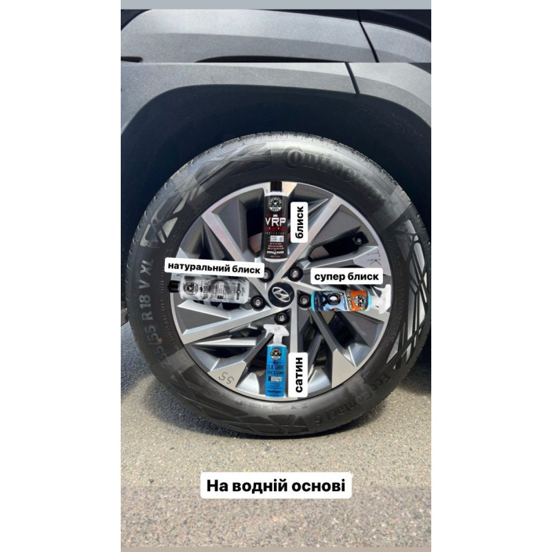 Після очищення шин, комбінованих приладів, вінілу та пластикових облицювань важливо нанести засіб для захисту поверхонь і додати трохи блиску. "Natural Shine" живить і відновлює поверхні до їхнього оригінального вигляду. Використовуйте його на шинах, комбінованих приладах та декоративних елементах, щоб створити натуральний, приємний на дотик вигляд, уникнувши ефекту дешевих олійних та надмірно блискучих продуктів.