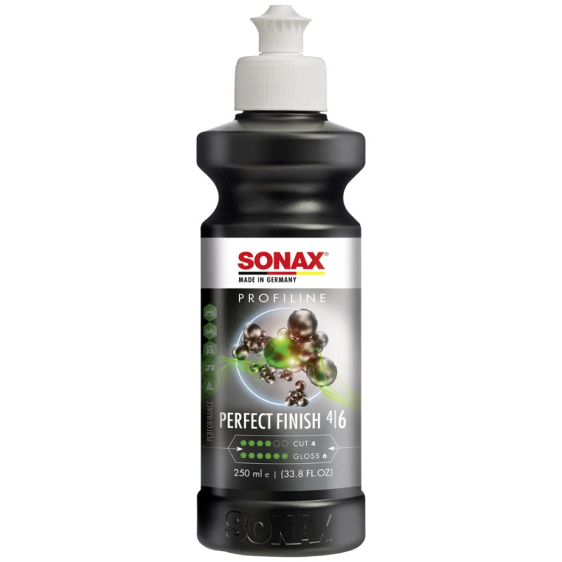Поліроль для кузова автомобіля SONAX PROFILINE Perfect Finish 4-6 спеціально розроблений для одноступінчастої полірування локальних вкраплень лакофарбового покриття, таких як частинки пилу або патьоки лаку. Спеціальні наноабразіви забезпечують хороше видалення подряпин не залишаючи голограм або для полірування лакофарбового покриття.