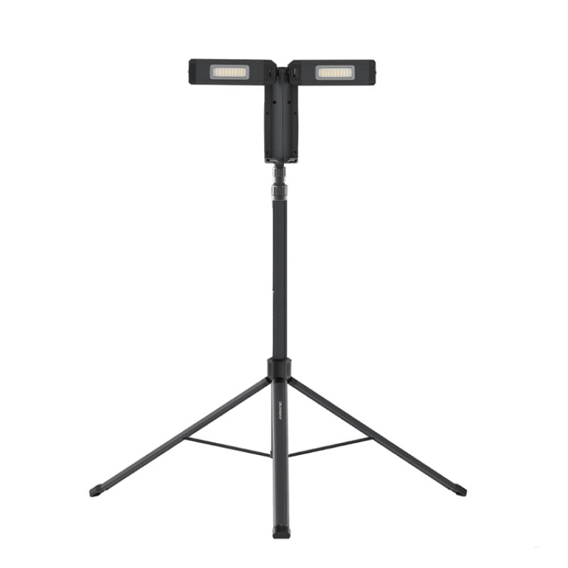 Tower Compact Connect – новинка серед професійних освітлювальних приладів Scangrip. Це багатофункціональний прожектор з 2 поворотними на 360° головками, що забезпечують рівномірний світловий потік до 2500 люмен та з легким, проте міцним штативом.Джерело світла – 2 прожекторні LED-головки. При необхідності вони знімаються з штатива та розташовуються на будь-якій горизонтальній поверхні, або ж підвішуються. Для цього передбачений вбудований металічний гачок. Кожна головка обертається незалежно одна від одної у двох осях. Це дозволяє створити ідеальні умови освітлення, виходячи з поточних потреб. Завдяки двокроковому регулюванню світлового потоку можна встановити також яскравість.Штатив розкладається та складається назад за кілька секунд натисканням однієї кнопки. Це можливо завдяки функції Quick Release. Висоту можна встановити у діапазоні від 90 см до 2 м. У складеному положенні штатив легко транспортувати однією рукою завдяки його відносно невеликій вазі – 2,7 кг.До прожектора Tower Compact Connect можна підключити як акумуляторну систему METABO/CAS 18 В, так і будь-який інший акумулятор, скориставшись перехідником Scangrip Smart Connector. Також можна заживити його від електромережі за допомогою блока живлення Power Supply.