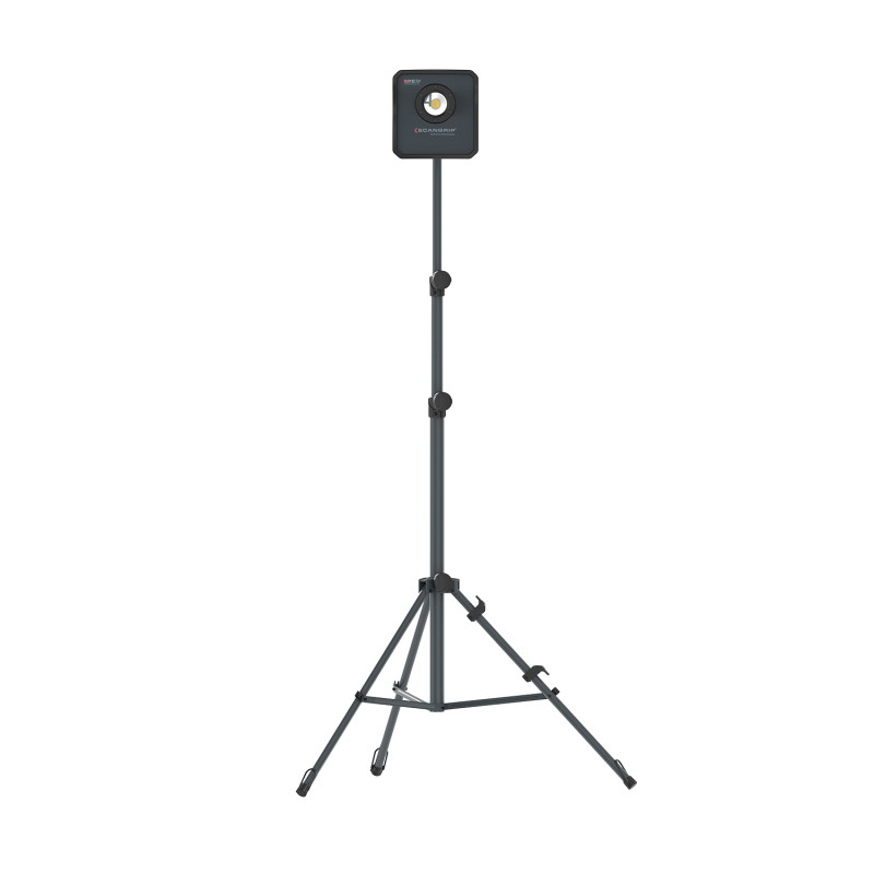Штатив Scangrip Tripod призначений для стаціонарного розміщення ламп робочого освітлення і підсвічування певної ділянки приміщення. Висота регулюється в межах від 1.35 до 3 м, що дає змогу встановлювати світильники на необхідній висоті. Прожектор можна нахиляти для забезпечення оптимального кута освітлення.