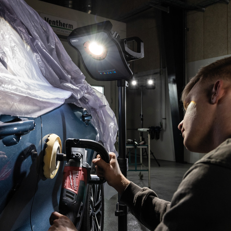 Scangrip Multimatch 3 Connect – прожектор на акумуляторі зі світловим потоком до 3000 люмен, створений для інспекції великої площі поверхні під час полірування, фарбування, очистки або підбору кольору.Прожектор сумісний з акумуляторною системою METABO/CAS 18В та іншими акумуляторами 18В/20В під час використання перехідника Scangrip Connector. Це дозволяє живити пристрій від більшості популярних акумуляторів. Вбудований блок живлення має USB-роз'єм для заряджання мобільних пристроїв. Він забезпечує 120 хвилин автономної роботи при яскравості 300 люмен. Також прожектор може працювати від мережі.Scangrip Multimatch 3 Connect оснащений унікальною технологією CCT SCAN. Вона є логічним продовженням звичайного п'ятиступінчастого димера для перемикання світлової температури. Її суть– плавніші переходи температури від 2500 до 6500 К з можливістю її блокування в момент, коли знайдено оптимальну. Це гарантує максимально точний підбір кольорів, а також виводить пошук дефектів лакофарбового покриття на новий рівень.Крім п'ятиступінчастого димера, прожектором можна дистанційно керувати по Bluetooth-підключенню зі смартфона (увімкнення/вимкнення, регулювання рівня світловіддачі). Для цього потрібно завантажити на смартфон або планшет програму з App Store (для пристроїв під керуванням iOS) або Google Play (для пристроїв під керуванням Android) та вивести комфорт роботи на новий рівень.З прожектором Multimatch 3 Connect можна використовувати безліч аксесуарів для більш тонкого налаштування освітлення. Так, для розсіювання, пом'якшення світлового потоку та адаптації світла під конкретні завдання створено дифузор Scangrip Diffuser. Для встановлення освітлювального приладу на певній висоті достатньо скористатися штативом Scangrip Tripod або мобільним Scangrip Wheel Stand. Також на самому корпусі прожектора передбачена зручна ручка для перенесення та гачок для фіксації.Батарея, зарядний пристрій, перехідник та мережний блок живлення до комплекту поставки не входять. Soficar – офіційний представник Scangrip в Україні. Надаємо гарантію 12 місяців, а також післягарантійний ремонт.