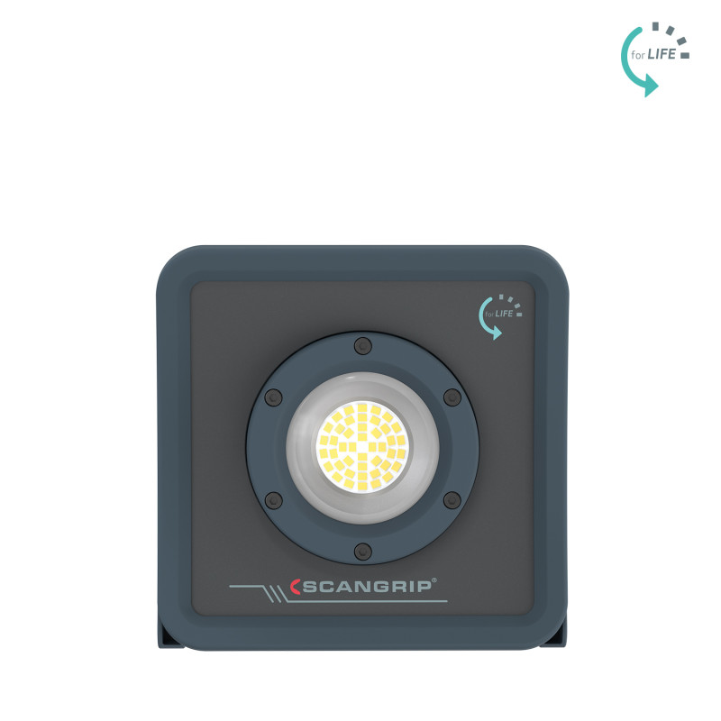 Scangrip Nova R for Life – компактний, ергономічний та зручний світлодіодний прожектор, оновлена версія Scangrip Nova R. Працює на основі технології Multi-LED. Його 44 світлодіоди забезпечують потужне і абсолютно рівномірне підсвічування до 2000 люмен навіть у складних робочих умовах завдяки міцному корпусу зі ступенем пило- та вологозахисту IP67. Функція регулювання яскравості дозволяє встановлювати п\'ять різних рівнів освітлення. Функція OPTILight дозволяє оптимізувати освітлення та час роботи одним торканням кнопки на корпусі прожектора.Прожектор Nova R for Life оснащений індикатором стану батареї з кроком 20% рівня заряду і часом роботи, що залишився. Це дозволяє ефективніше планувати робочий процес та уникати незапланованих перебоїв із подачею електроенергії. Ємкість батареї 3200 мАг забезпечує автономний час роботи до 17 годин при мінімальному рівні освітленості або півтори години при максимальній яскравості. З використанням адаптивної функції рівня освітлення OPTILight час автономної роботи ліхтаря становить три години.Заряджання акумулятора прожектора Scangrip Nova R for Life – максимально просте завдання завдяки практичній зарядній базі з роз\'ємом USB type-C та зарядному блоку з напругою 5 Вольт. Час до повної зарядки батареї складає п\'ять із половиною годин.Гнучка підставка-кронштейн може використовуватися як гачок для підвішування та для встановлення освітлювального приладу під потрібним кутом. Завдяки вбудованим в її основу магнітам прожектор також можна фіксувати на металевих поверхнях. Передбачені отвори для монтажу на штативах