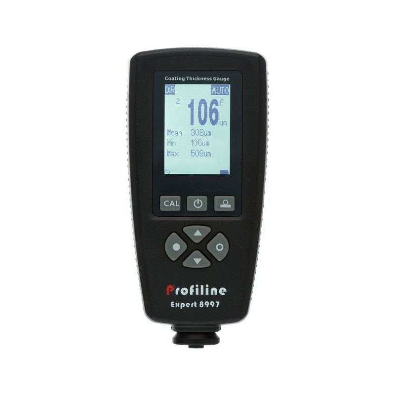 Опис товщиноміра Profiline Expert 8997: Більшість товщиномірів лакофарбового покриття працюють в діапазоні максимум до 2 мм (2000 мікрон). Модель Profiline Expert 8997 розроблена спеціально для підприємств, яким потрібен збільшений діапазон вимірювань - 5мм (5000 мікрон). Це ключова особливість даної моделі. Товщиномір Profiline Expert 8997 працює однаково точно по всьому діапазону, аж до 5мм. Для комфортної роботи є всі необхідні функції - автоматична статистика, підсвічування дисплея, автоматичне калібрування. Також є варіант цієї моделі без виносного датчика. Ключові особливості товщиноміра Profiline Expert 8997: компактні розміри; збільшений діапазон вимірювань до 5 мм; автоматичне визначення поверхні (Fe/NFe); автоматичне і ручне калібрування; підсвічування дисплея; автоматична статистика результатів замірів; повністю русифікований інтерфейс; режим роботи в трьох величинах: мікрони - µm, мілси - mil, міліметри - мм