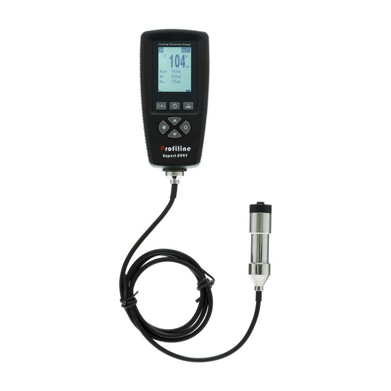 Опис товщиноміра Profiline Expert 8997 Sonda: Більшість товщиномірів лакофарбового покриття працюють в діапазоні максимум до 2 мм (2000 мікрон). Модель Profiline Expert 8997 Sonda розроблена спеціально для підприємств, яким потрібен збільшений діапазон вимірювань - 5мм (5000 мікрон). Це ключова особливість даної моделі. Товщиномір Profiline Expert 8997 Sonda працює однаково точно по всьому діапазону, аж до 5мм. Для комфортної роботи є всі необхідні функції - автоматична статистика, підсвічування дисплея, автоматичне калібрування. Також є варіант цієї моделі без виносного датчика. Ключові особливості товщиноміра Profiline Expert 8997 Sonda: компактні розміри; збільшений діапазон вимірювань до 5 мм; автоматичне визначення поверхні (Fe/NFe); автоматичне і ручне калібрування; підсвічування дисплея; автоматична статистика результатів замірів; повністю русифікований інтерфейс; режим роботи в трьох величинах: мікрони - µm, мілси - mil, міліметри - мм