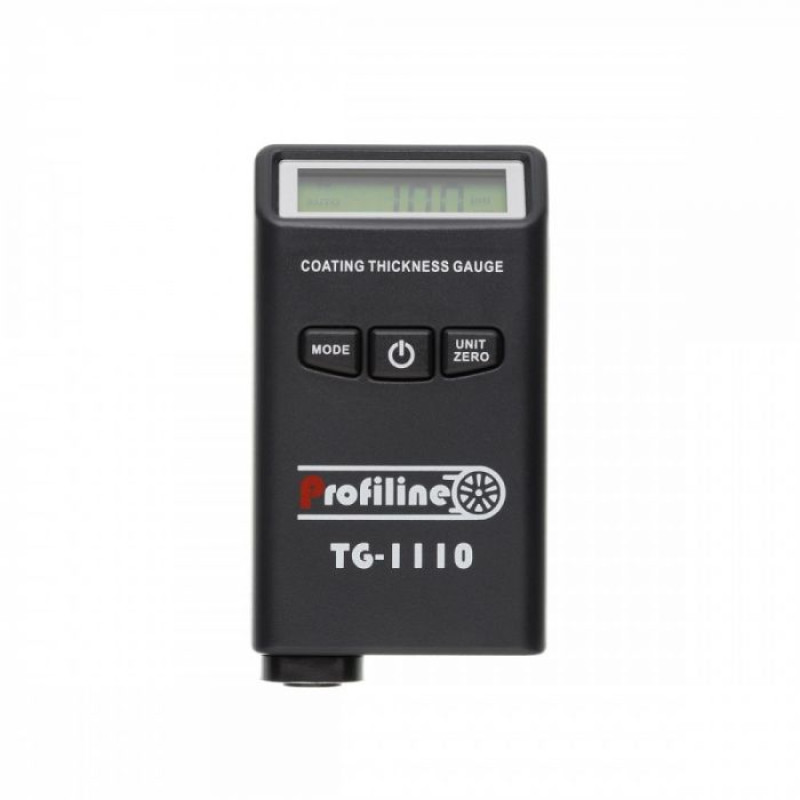 Коротко про товщиномір Profiline TG-1110: Товщиномір Profiline TG-1110 вимірює як чорні, так і кольорові метали, автоматично визначає тип поверхні і працює з кроком в 10 мікрон, як професійні моделі. TG-1110 - це краще рішення на ринку серед бюджетних товщиномірів фарби. Маленькі габарити приладу дозволяють завжди носити його з собою. Похибка при показаннях не перевищує 10 мікрон. Чому варто купити товщиномір Profiline TG-1110? Profiline TG-1110 має розміри всього 89х49х21мм, що дозволяє комфортно і головне якісно проводити виміри на всіх зонах автомобіля. Крок вимірювання в 10 мікрон дає можливість визначити не тільки шпаклівку, але і другий шар фарби, а також поліровані деталі. Прилад працює в трьох одиницях виміру на ваш вибір - микронах, мілсах, міліметрах. Час відгуку товщиноміра TG-1110 менше 1 секунди, що ще більше додасть комфорту в роботі. Окремо варто відзначити калібрування товщиноміра Profiline TG-1110 - воно дуже просте і займає буквально 5 секунд. Ключові характеристики товщиноміра Profiline TG-1110: працює на чорних і кольорових металах; крок вимірювання в 10 мікрон; режим вимірювання в мікронах, мілсах, міліметрах; просте калібрування; вологостійкий датчик