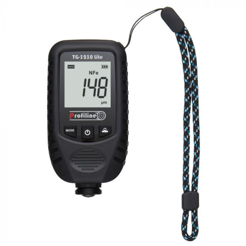 Товщиномір Profiline TG-3230 Lite - це бюджетна новинка 2023 року з топовим набором характеристик від лідера ринку України, компанії Profiline. За своєю якістю та функціоналом Profiline TG-3230 Lite переважає всі моделі свого цінового сегменту, включаючи популярні моделі з аліекспрес від R&D (TC100, ET360, ET330, GM998, TC200) та Yunombo (YNB-111, YNB-220, YNB-300). Profiline TG-3230 Lite потужніший абсолютно по всім параметрам - швидкість, точність, компактність, функціонал. Окремо варто відзначити, що Ви отримуєте ТОП товщиномір цінового сегменту тут і зараз з повноцінною гарантією 12 міс, а не чекаєте місяць доставки з аліекспрес за прибор без гарантії. Що ж представляє собою новий Profiline TG-3230 Lite? Це дещо спрощена версія товщиноміра Profiline TG-3230 Pro. Відразу відзначимо, що компоненти всередині товщиномірів TG-3230 Lite та TG-3230 Pro абсолютно однакові! Тобто, фактично Ви отримуєте товщиномір TG-3230 Pro, але за значно меншу ціну! В чому ж різниця? В комплектації TG-3230 Lite відсутні гумовий чохол на сам прилад та тканевий чохол на пояс. Погодьтеся, не самі важливі речі, особливо для тих, хто не займається підбором автомобілів професійно кожного дня, а шукає бюджетний товщиномір для періодичного підбору авто собі, друзям, родичам. Найдорожча частина товщиноміру, а саме його датчик абсолютно однакові як в моделі TG-3230 Lite, так і в TG-3230 Pro, що надає Вам всю потужніть функціоналу товщиноміру. Габарити та зовнішній вид. Товщиномір Profiline TG-3230 Lite є одним з самих компактних приборів в асортименті. Його габарити складають всього 102х53х25мм. Прибор дуже зручно лежить у руці, але і не є занадто мініатюрним, не виглядає як "дешева іграшка". Завдяки компактним габаритам Ви без проблем зробите заміри будь-яких зон автомобіля. Корпус товщиноміра виконаний з міцного ABS-пластику, стійкого до тріщин та розломів. Навіть, якщо товщиномір впаде на тверду поверхню, з вірогідністю 95% залишиться тільки слід від локального удару у виді сколу або подряпин. Корпус складається з двох основних частин, міцно з'єднаних чотирма гвинтами. Присутня заводська пломба з серійним номером товщиноміра. В районі датчику на корпусі є спеціальна зона для пальця, яка дозволяє правильно фіксувати товщиномір під прямим кутом до поверхні при проведенні замірів. В цілому, дисплей, клавіші управління оптимально та гармонійно розміщені на лицевій частині товщиноміра Profiline TG-3230 Lite, а глянец навколо дисплею додає ефект преміальності і прибор дійсно виглядає дорогим. Дисплей. Незважаючи на компактні габарити товщиноміра Profiline TG-3230 Lite, він має великий дисплей з підсвічуванням діагоналлю 1,57 дюймів (4см). Також є функція перевороту дисплея, що додасть зручності при роботі з товщиноміром. Щоб перевернути дисплей, потрібно натиснути і утримувати 2 сек клавішу "MODE" на ввімкненому товщиномірі. Цифри замірів займають більше 60% висоти дисплею, вони досить великі, що додасть комфорту, особливо якщо у Вас слабкий зір. Всі індикатори на дисплеї інтуїтивно зрозумілі і лаконічно розташовані у його верхній частині: "AUTO" - означає, що обране автоматичне визначення поверхні і прибор буде сам визначати тип металу на автомобілі; "ZERO" - активований режим калібрування "0"; "NFe/Fe/Zn" - індикація типу поверхні (чорний метал, чорний цинкований метал, кольоровий метал, металізована шпаклівка; Додатково є індикатор заряду батарейок. Датчик. Діаметр кільця навколо датчику складає всього 0,59 дюйма (1,5см), а самого датч