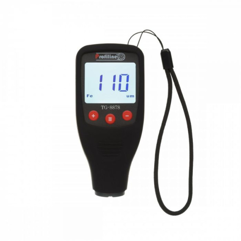 Відеоогляд товщиноміра Profiline TG-8878: Коротко про товщиномір Profiline TG-8878: Товщиномір TG-8878 є одним з найстабільніших і точних приладів. Корпус товщиноміра виконаний в стильному сучасному дизайні приємного кольору. Великий дисплей з приємним підсвічуванням також буде додатковим бонусом. Товщиномір TG-8878 відрізняється якісною роботою в режимі автокалібровки (НЕ калібруючи по пластинах) і показує з точністю понад 98%. Дана модель товщиноміра стане вашим надійним помічником при скануванні і аналізі авто, що купується! Чому варто купити товщиномір Profiline TG-8878? Товщиномір ЛФП TG-8878 дуже простий в застосуванні і, при цьому, дуже практичний. Для початку роботи досить натиснути на вимірювальний зонд (вимикається товщиномір автоматично після 60 секунд бездіяльності). Автоматично активується підсвічування дисплея і звуковий супровід вимірів. На ваш вибір можна працювати в двох величинах - мікронах або ж мілсах. Зміна режиму здійснюється коротким натисканням клавіші "+". Корисною функцією товщиноміра TG-8878 також є можливість перевороту дисплея на 180 градусів, що дозволить максимально комфортно проводити виміри, не перевертаючи сам прилад. Ця функція виконується коротким натисканням клавіші "-". Якщо Ви забули калібрувальні пластини вдома, а прилад збив налаштування, не варто засмучуватися. В товщиномір TG-8878 вбудована функція автокалібровки, яка дозволяє збити налаштування до заводських. Похибка показань в такому режимі не перевищить 1%. Здійснюється ця функція затисненням кнопки "-" на 2 сек. Всі ці функції роблять товщиномір TG-8878 універсальним сучасним приладом, з яким Ви завжди отримаєте достовірну інформацію про авто, що купується! Ключові характеристики товщиноміра Profiline TG-8878: автоматично визначає тип вимірюваної поверхні (чорний / кольоровий метали); звуковий супровід виміру; можливість виводити результат в мікронах / мілсах; підсвічування дисплея для комфортної роботи в темний час доби; наявність автокалібровки, яка повністю виключає потребу калібрування приладу по пластинах; функція перевороту дисплея; пам'ять на 20 замірів, включаючи можливість аналізувати мінімальні і максимальні показання